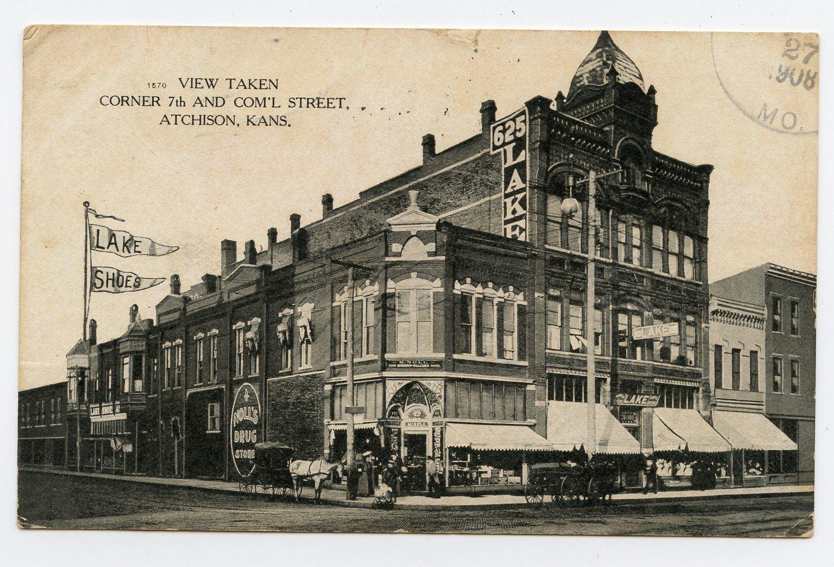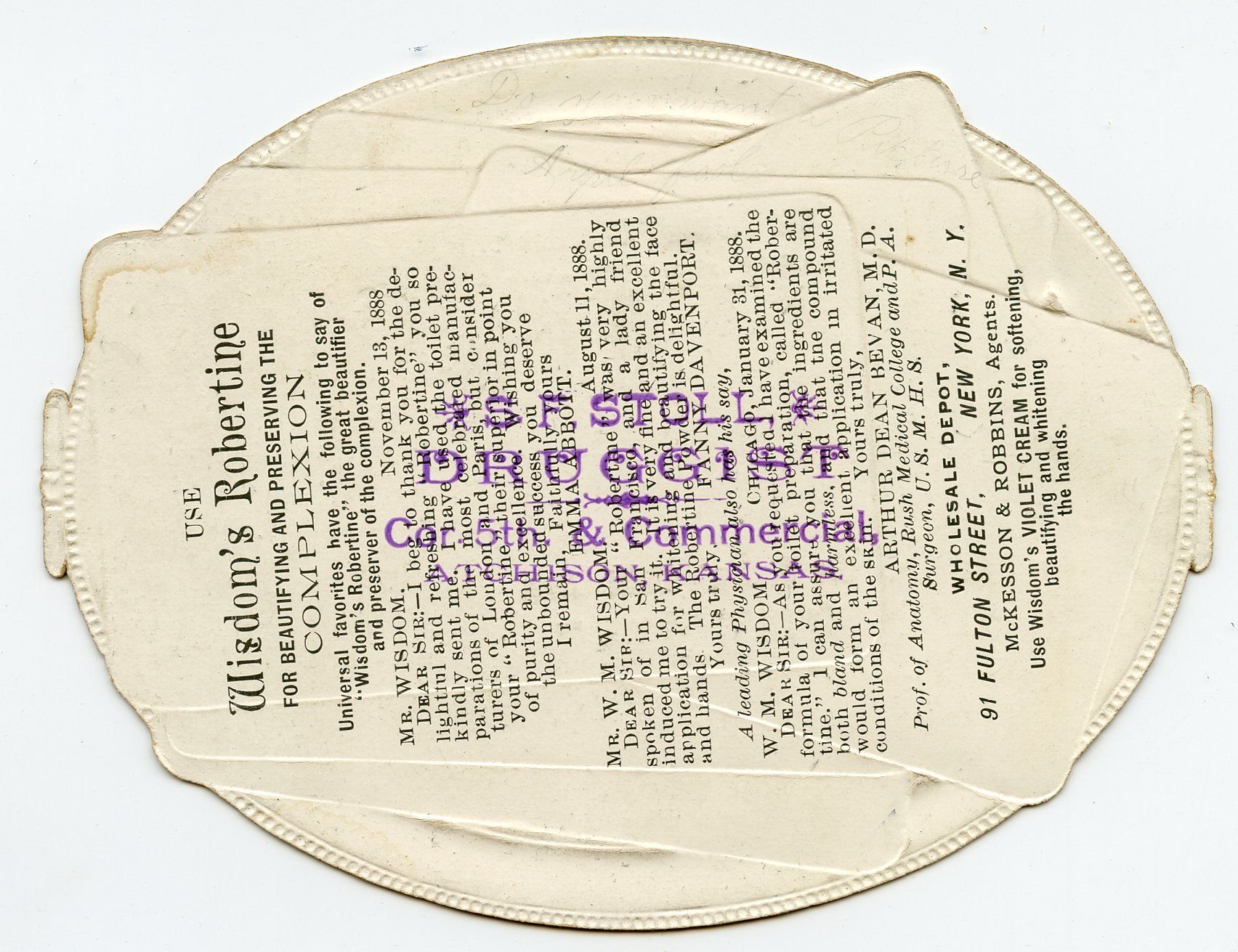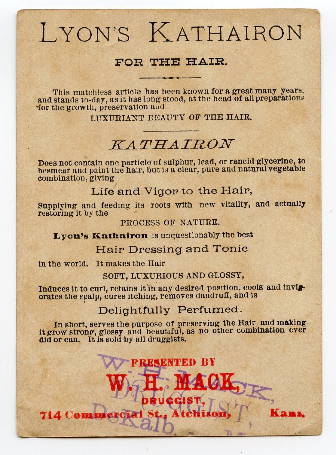 In 1888, two druggists, George Barton and A.F. Gratigny, then working as druggists for J. W. Allen in Atchison, KS, decided to strike out on their own, creating the Barton & Gratigny Drug Store. Although Gratigny was never in good health, his death in 1894 was unexpected. Barton buys the half ownership of the store from his widow and in 1895 changes the name to just Barton Drug Store. Along with the popular patent medicines of the day, he heavily advertised his soda fountain and ice cream. In 1902, he sells out to W. V. Ingham.