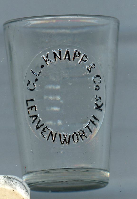 4460 Knapp, C. L. & Co.; Clear glass, back embossed with graduations: tea & tablespoon; 1.8" x 1.8" x 2.2", Courtesy Crispin's Drug Store Museum, Lincoln, KS