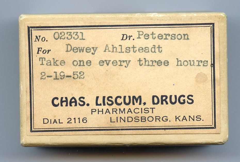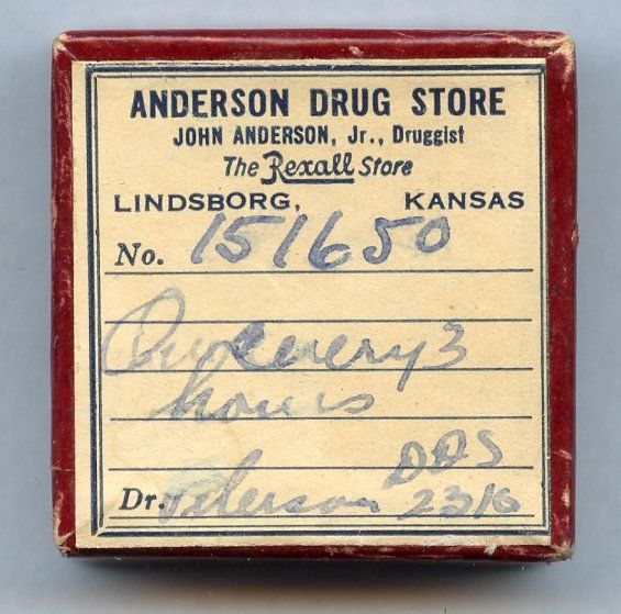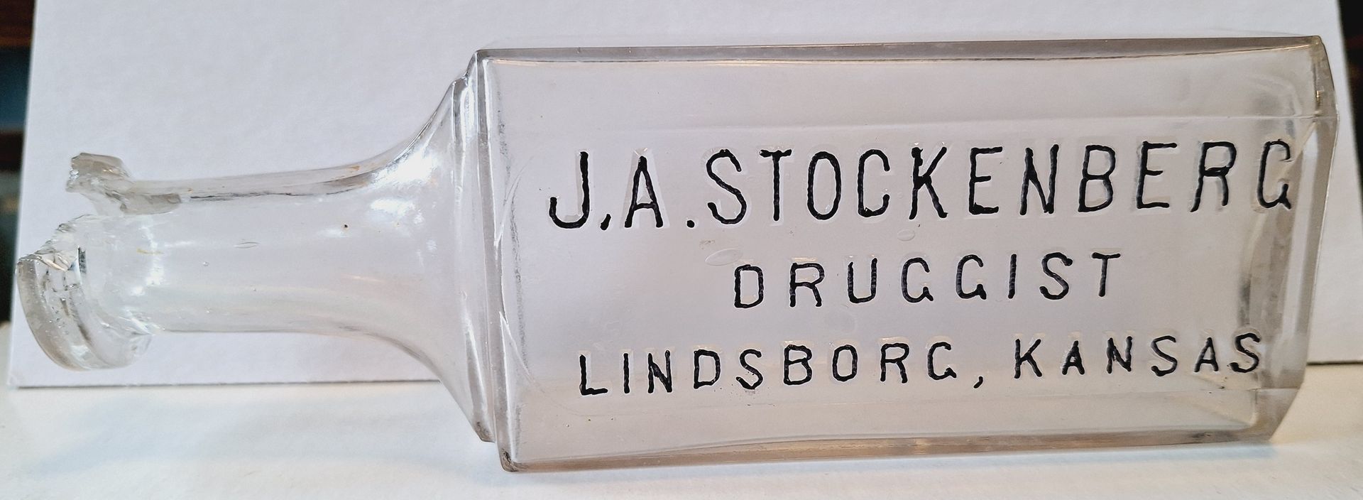 John A. Stockenberg started his drug store career in McPherson, KS, working at the Ek & Engstrom Drug Store in 1885. In 1901, he moved to Lindsborg, partnered with John Gustafson and opened the Gustafson & Stockenberg Drug Store. The partnership split in 1910, each running their own store. Stockenberg's lasted until 1927.