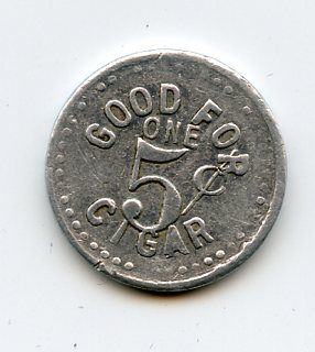 Reverse of 11680; Embossed back: GOOD FOR // ONE // 5¢ // CIGAR