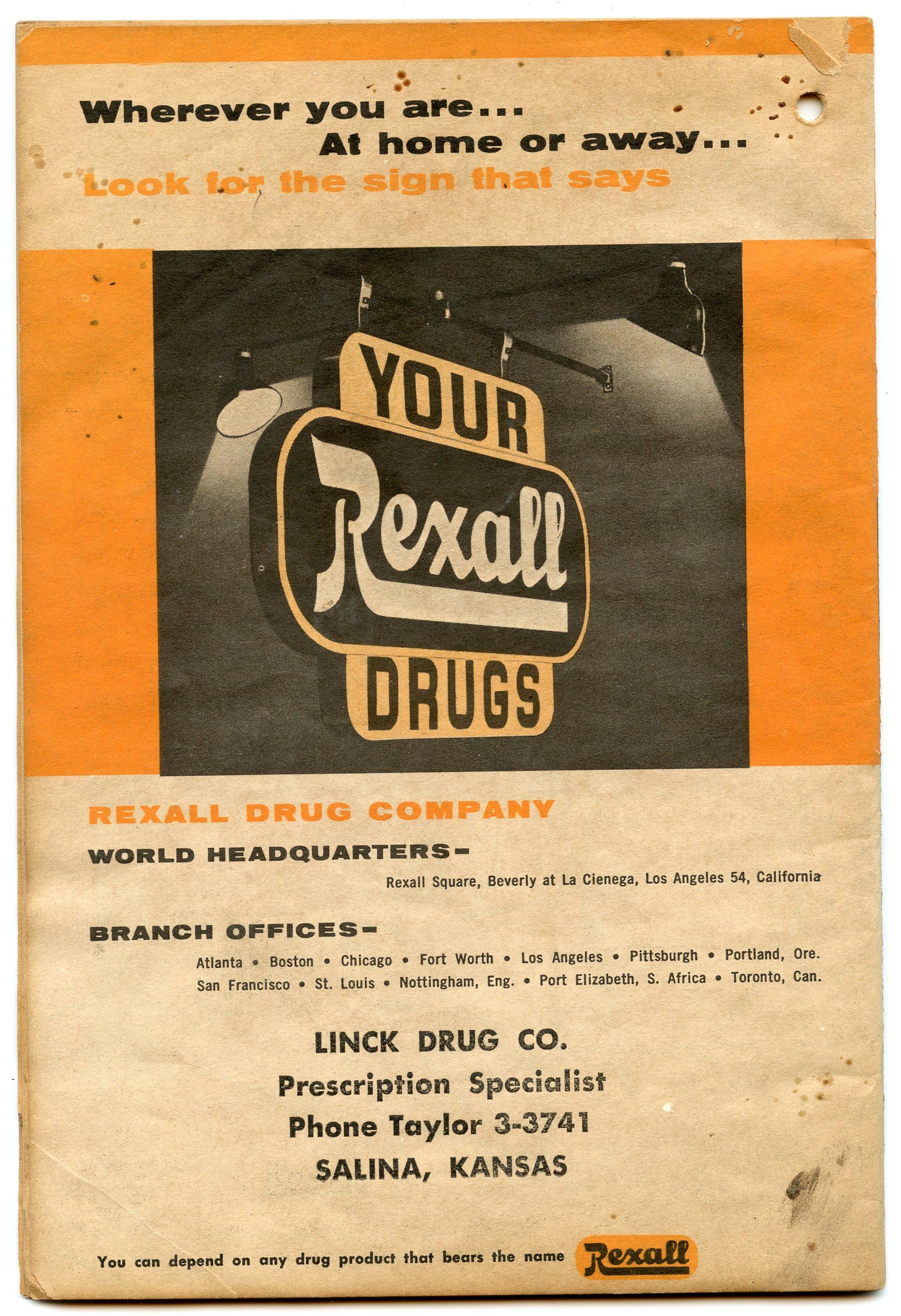 11357 Linck Drug Co.; 1957; Rexall Family Almanac & Moon Book, 1957; Yvonne de Carlo on cover; 5.2" x 7.7"; Courtesy Crispin's Drug Store Museum, Lincoln, KS