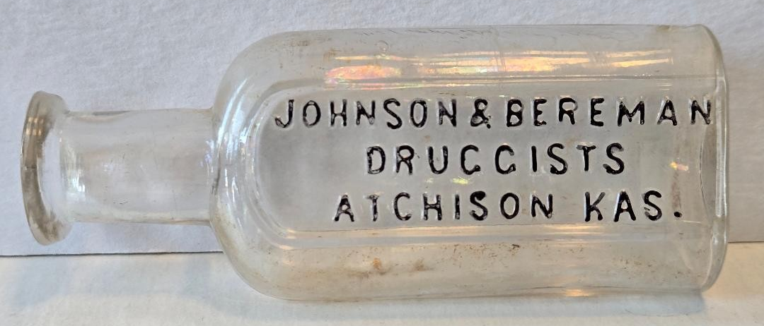 Samuel O. Bereman came from Iowa to Atchison, KS in 1873 and buys out Mr. Gunn from the Crane and Gunn Drug Store, creating the Crane and Bereman. Then Sam buys out Crane in 1875 and it's simply Bereman's. 1878 sees William Johnson buying in and it is the Johnson & Bereman. In 1881, Johnson is out, and Stevenson is in, but only lasts until 1882, when it is back to just Bereman's. Dr. Williams is in and out in 1886, and Griffin makes the scene in 1887, which again, only lasts a year. In 1888, it is Bereman & Ritner, which runs until 1904, when Ritner buys out Bereman. and old Sam disappears.