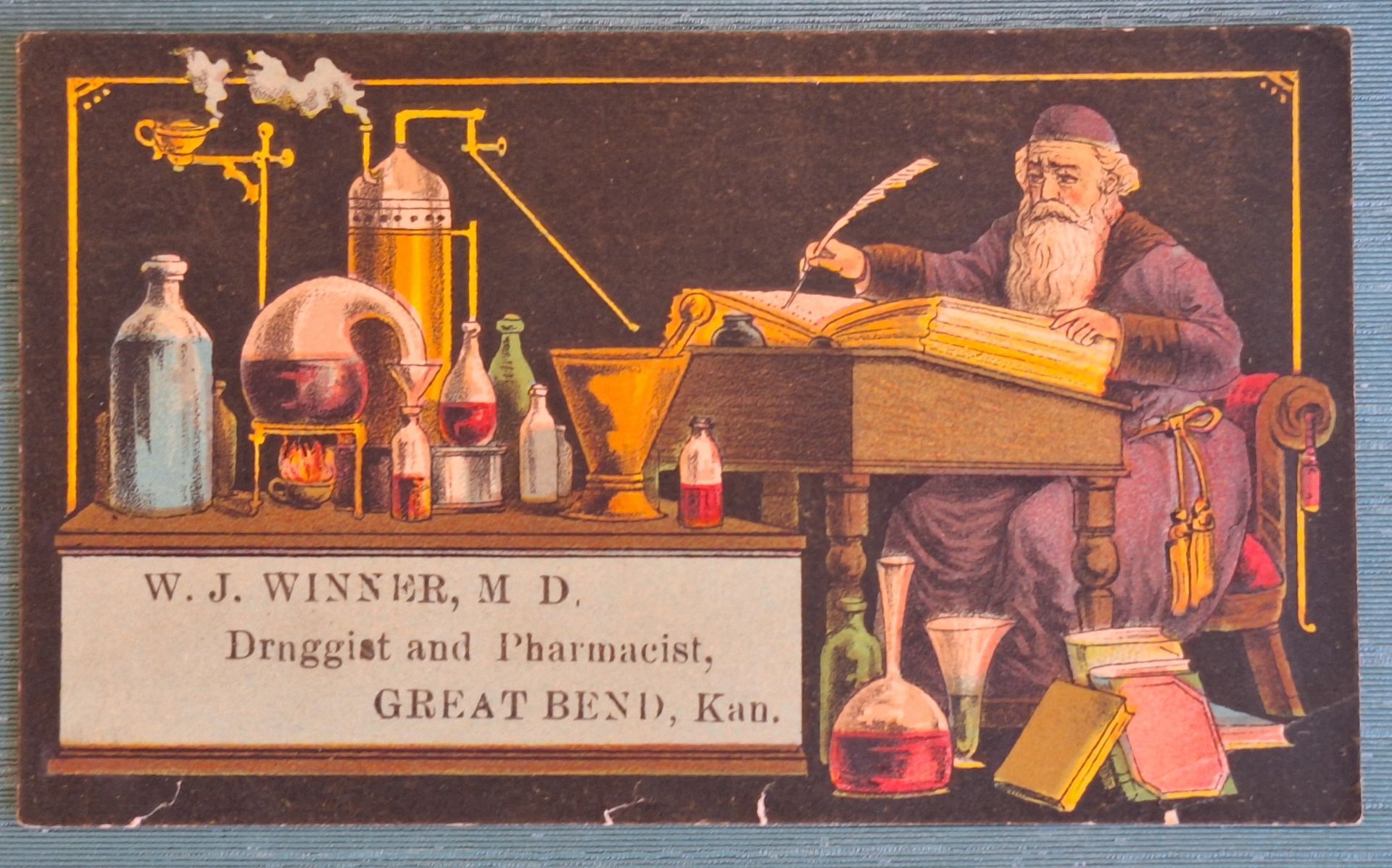 When Charles A. Hooper of Atchison, KS, came to Great Bend, KS, in April of 1886, he seemed to be a man with a plan. He was hired as a druggist in Dr. Morgan Tulles' Drug Store, but that was just the first step. The very next month, he bought a half interest in the store, forming the Tulles-Hooper Drug Store. They moved into a new location in October and in September, 1887, Charles buys out Dr. Tulles' other half, renaming the operation the Hooper Drug Co. The store is enlarged and a soda fountain added in 1888. New lines of merchandise were added, including an extensive selection of wallpaper and paints for home beautification. The road to success wasn't without its bumps, like a conviction early in his career for not keeping exact records for sales of medicinal alcohol and a fine of $100 and 30 days in jail. The community thought so highly of him that a petition was sent to the governor requesting a pardon of the jail time. Among the signators of the petition were the judge and jury that convicted him. His newspaper ads disappear in 1923.