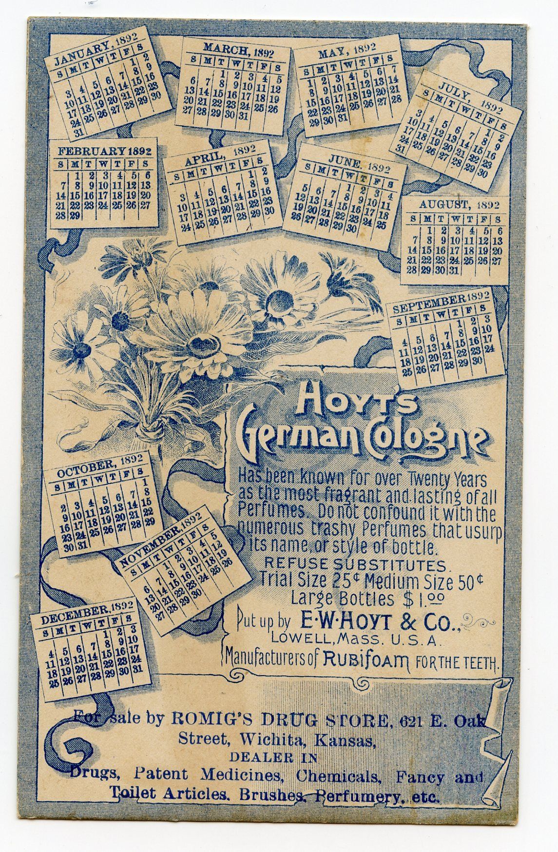 10353 Gehring's Pharmacy; 1909-1913; Calendar post card for December, 1910; 3.3" x 5.5"; Courtesy of Crispin's Drug Store Museum, Lincoln, KS